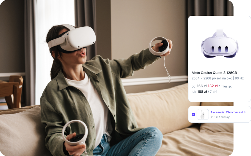 Marzenie pokoleń graczy właśnie się spełniło! Zakładasz gogle, chwytasz za kontrolery i jesteś w grze po uszy! Wystarczy subskrypcja w Meta i zanurzasz się w wirtualne światy na całego. Wynajęcie tego sprzętu to świetny start w VR - sprawdź, jakie to doświadczenie, kiedy gra miesza się z rzeczywistością; poznaj zupełnie nową jakość immersji!
