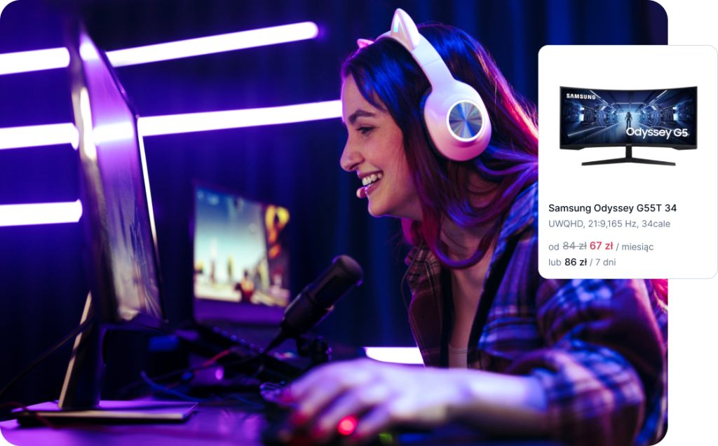 Dobra karta graficzna nie pomoże, kiedy monitor ma rozdzielczość świątecznego swetra. Wynajmij monitor i wyciskaj z gier maksimum doświadczenia! 34 cale i profil dostosowany do gamingowych wrażeń. Zanurz się w roz(g)rywce jeszcze głębiej dzięki płynności, rozdzielczości i realizmowi, jaki oferuje Samsung Odyssey - czas na prawdziwą gamingową Odyseję!